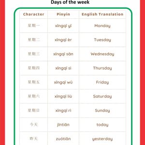 Chinese Days of The Week Chart