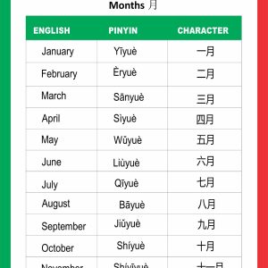 Chinese Months of the Year Chart