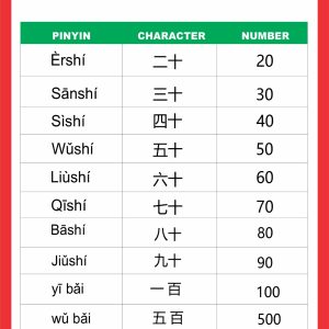 Chinese Numbers Chart 20-1000